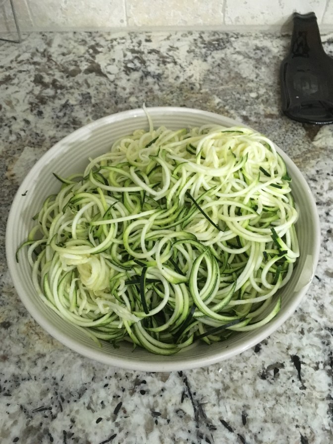- 4 medium sized zucchini (zoodled with spiralizer)